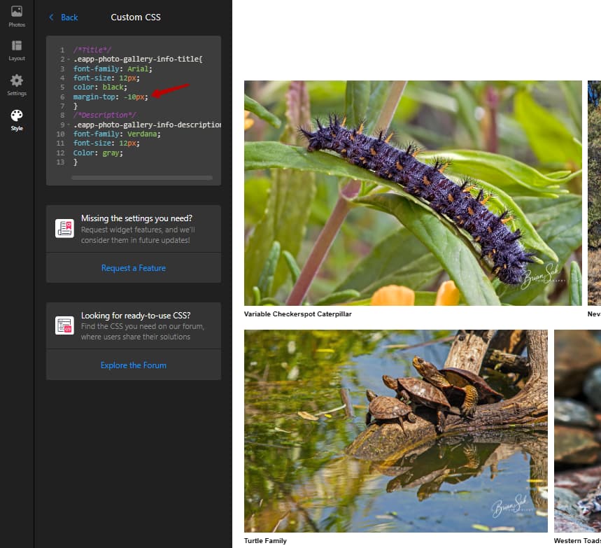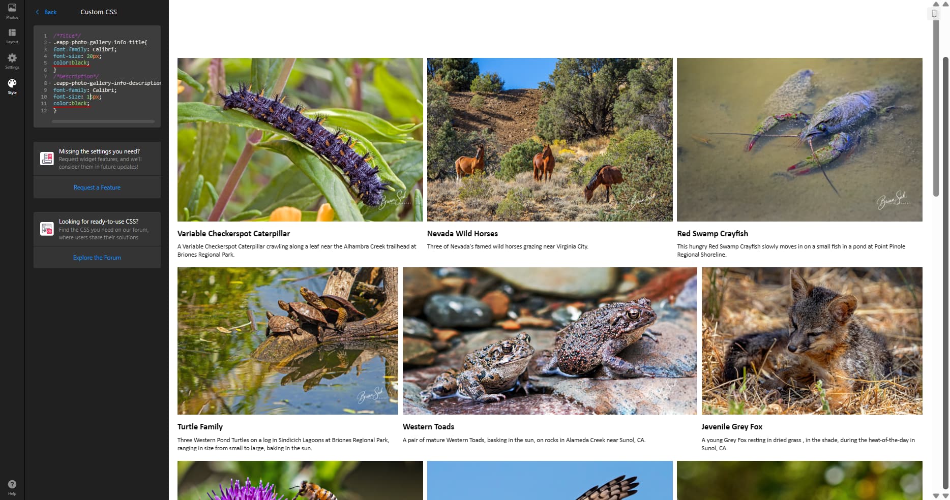 Subject [Elfsight Community] [Wishlist/Photo Gallery] Change font and font size for titles and description of images