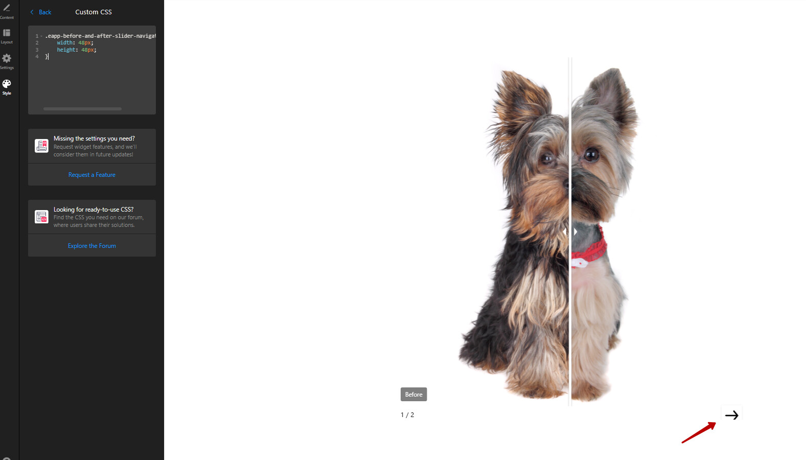 Add this code to the Custom CSS field on the Style tab of your Before and After Slider widget’s settings: