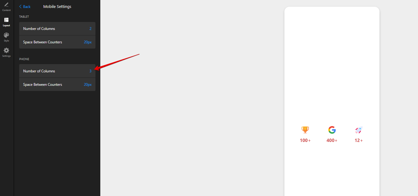 I’ll discuss if it’s possible to make the counter values look neat on mobile with 3 columns using this layout. I’ll report back once I have any news
