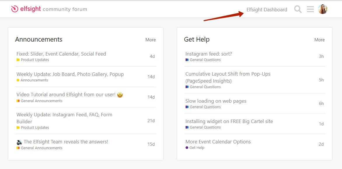 Finally, you have an option to get to your Elfsight dashboard right from the forum: