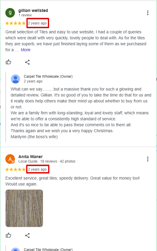 Good question! As you can see, Google doesn’t provide the publication date for each review. Instead, it just shows an approximate timeframe such as 2 years ago: